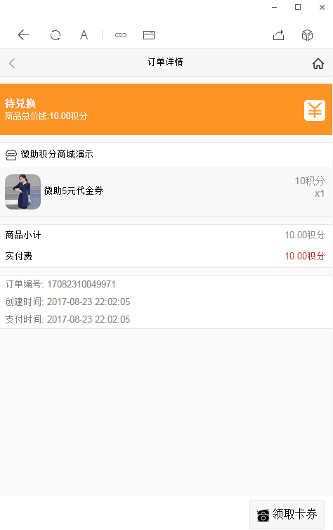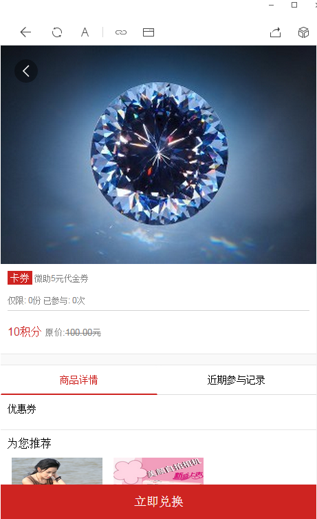 积分商城 支持积分兑换 实物 微信卡券 优惠券