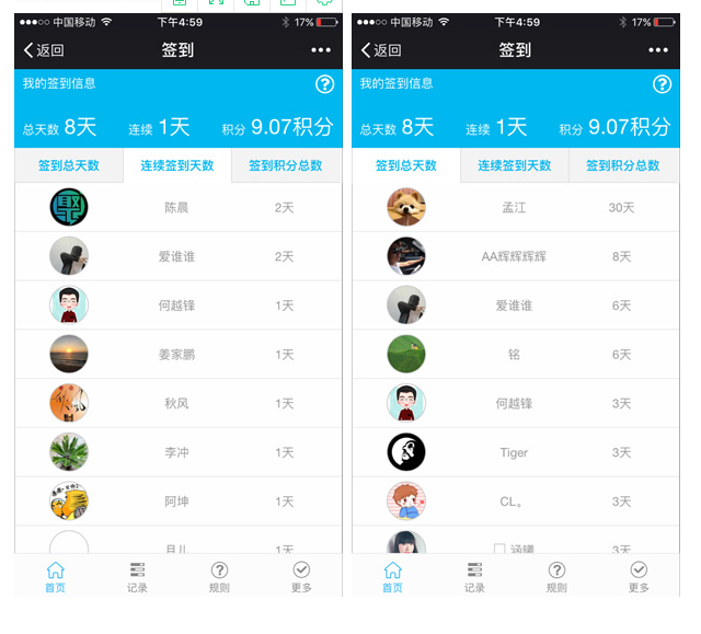 支持签到排行榜