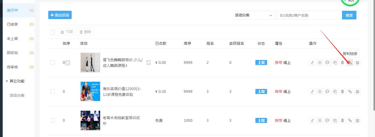 保存后可以看的我们添加的活动,可以通过这个活动的链接,单独访问这个活动如图