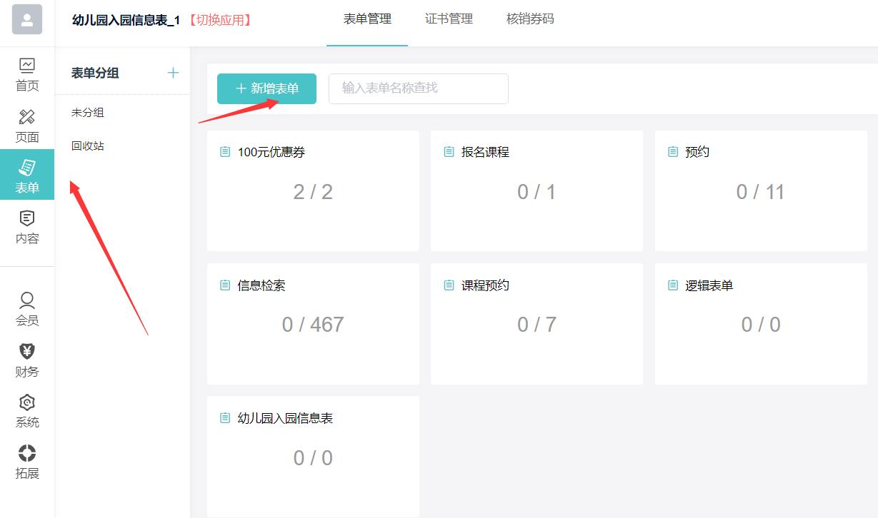生成后选择表单管理,进入之前创建好的表单