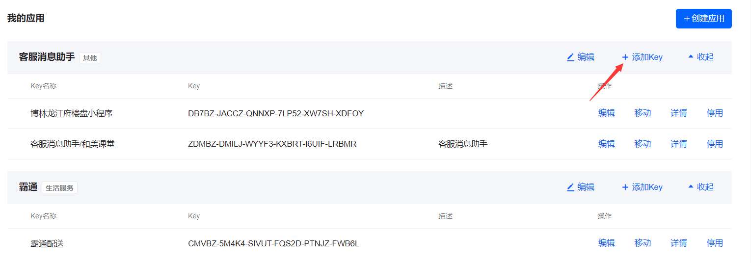 注册后,登录,选择 控制台--应用管理-添加一个应用,如图