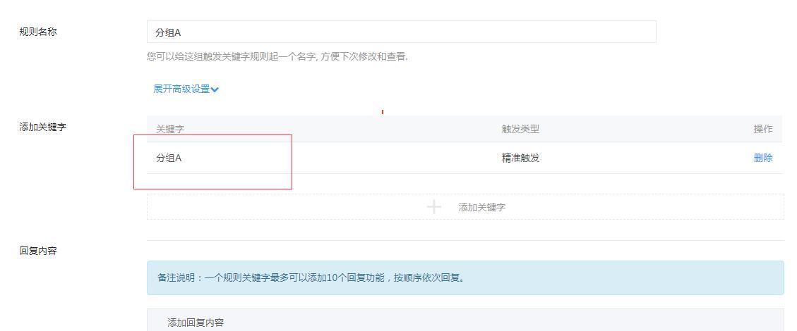 添加回复内容,回复内容选择标签分组