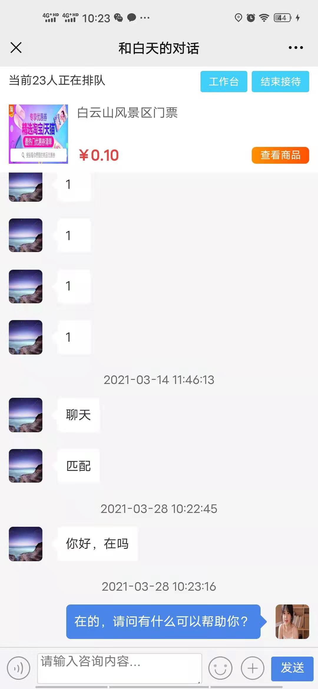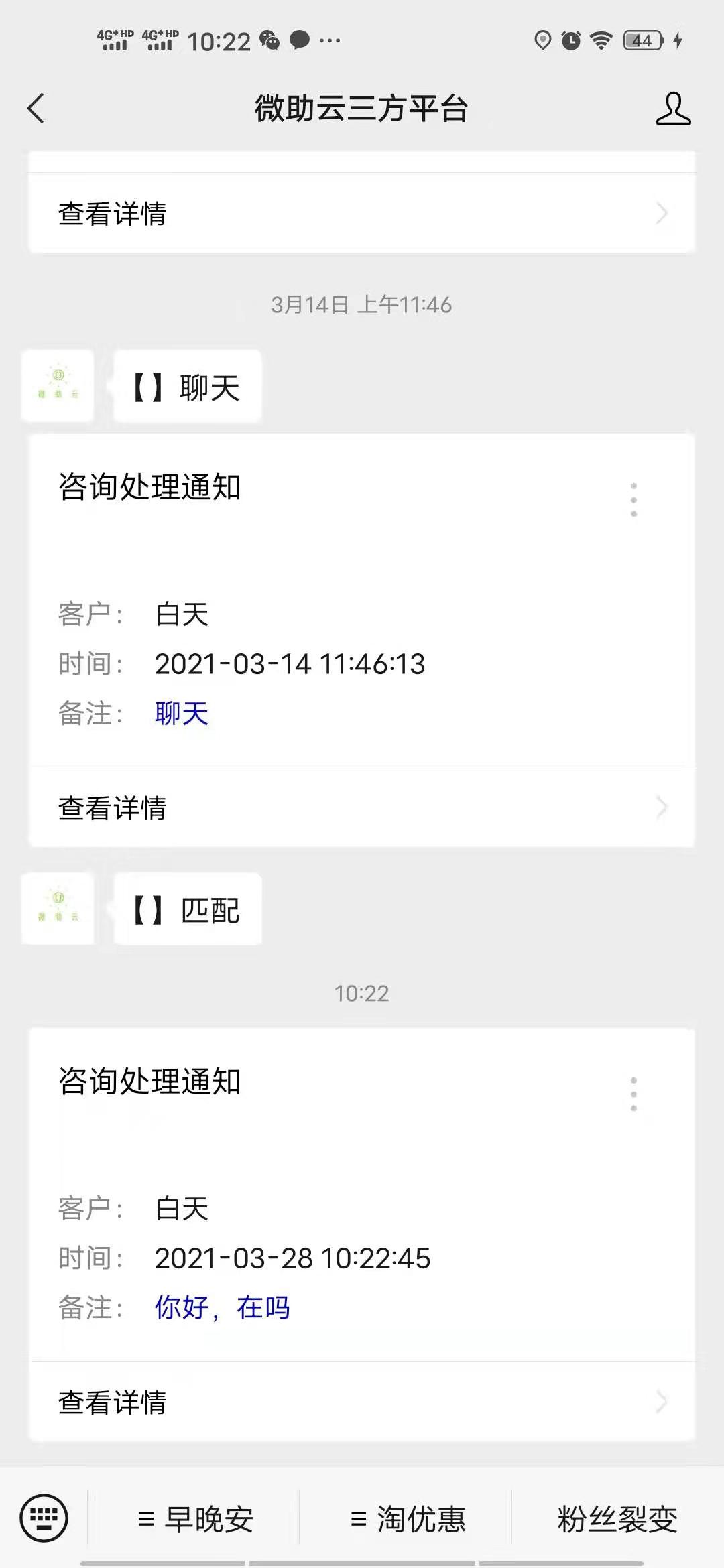 3、前端客服实时管理,管理员可以通过微信实时查看客服的工作记录。