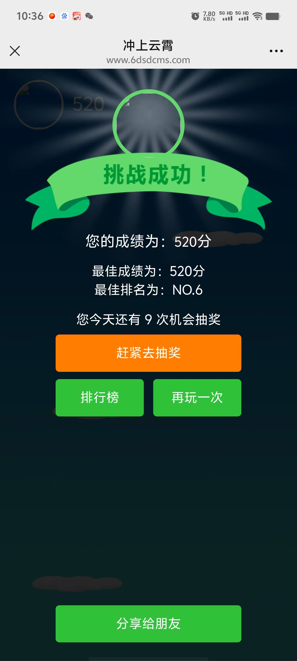 规则控制:可以设置用户参加总的参加活动次数和每日参加游戏的次数,可以设置用户达到多少分参加抽奖。