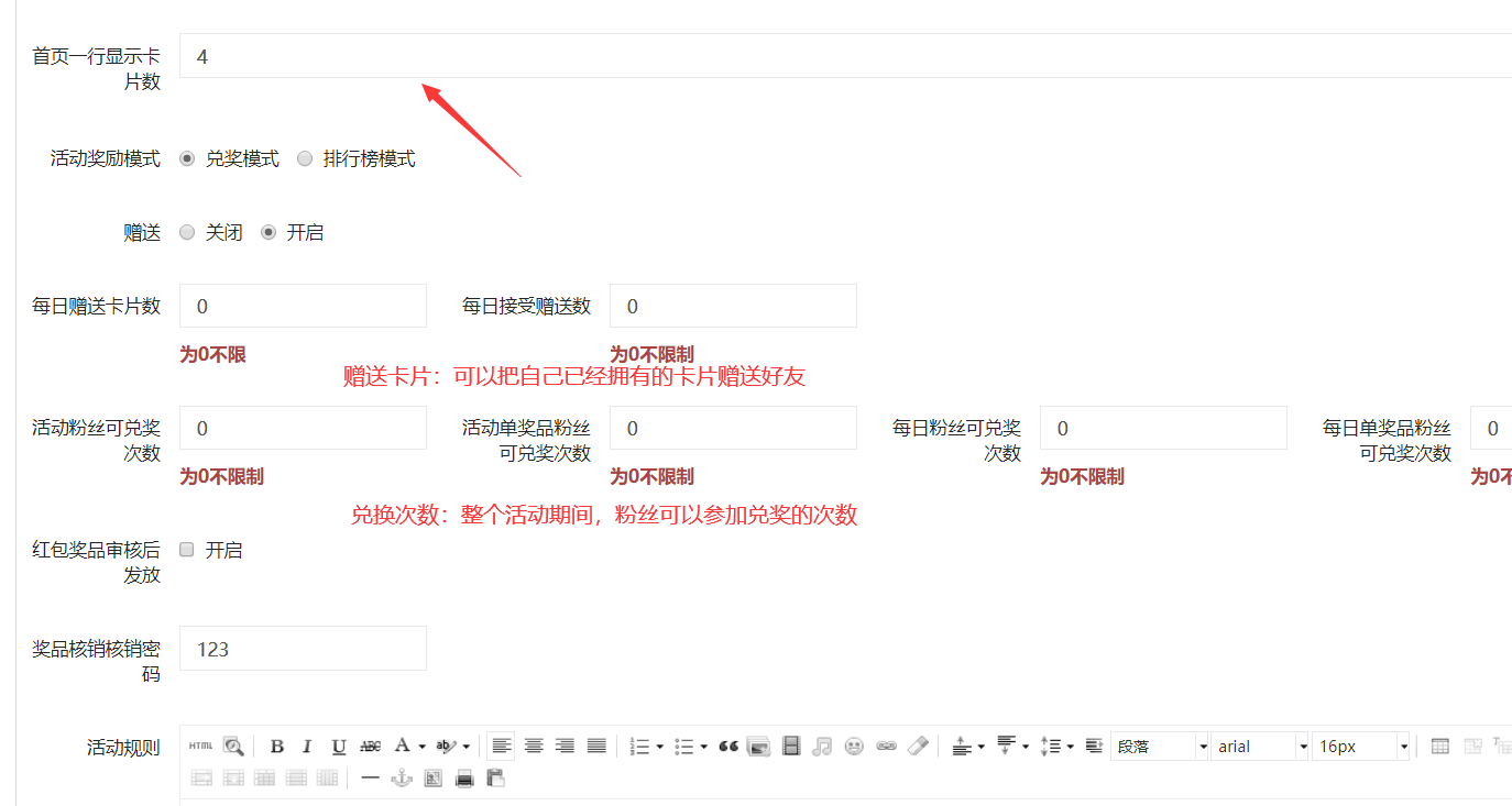 作用:通过微信集字活动,实现类似支付宝集福活动,用户集齐指定的卡片,就可以参加兑换奖品,奖品支持红包、实物。